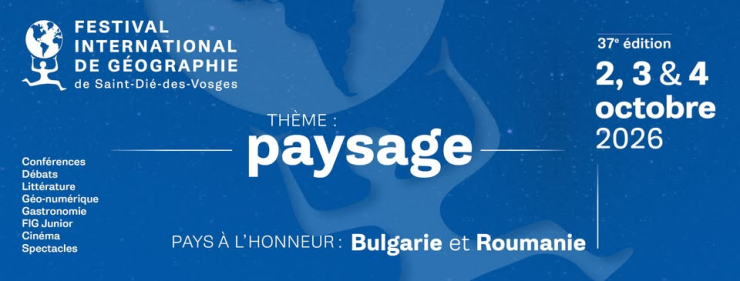 La 37e édition du festival international de géographie de Saint-Dié-des-Vosges, du 2 au 4 octobre 2026, rassemblera chercheurs et experts sur le thème du paysage, « à la fois objet d’attention, enjeu de mobilisation, outil de débat et d’action ». En parallèle, les pays à l’honneur seront la Bulgarie et la Roumanie.
