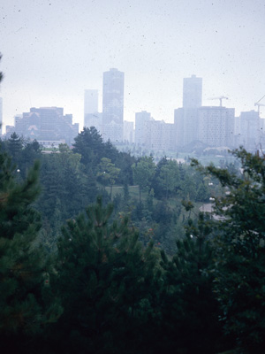 Concernant le parc André Malraux, on note par exemple les écarts saisissants entre les photos aériennes commandées par l’EPAD – insistant sur la monumentalité du chantier – et les prises de vue à hauteur d’homme de Jacques Sgard, qui documente la fabrique du lieu et de ses usages, depuis les bidonvilles qui préexistaient jusqu’aux joggers sillonnant les parcours arborés.